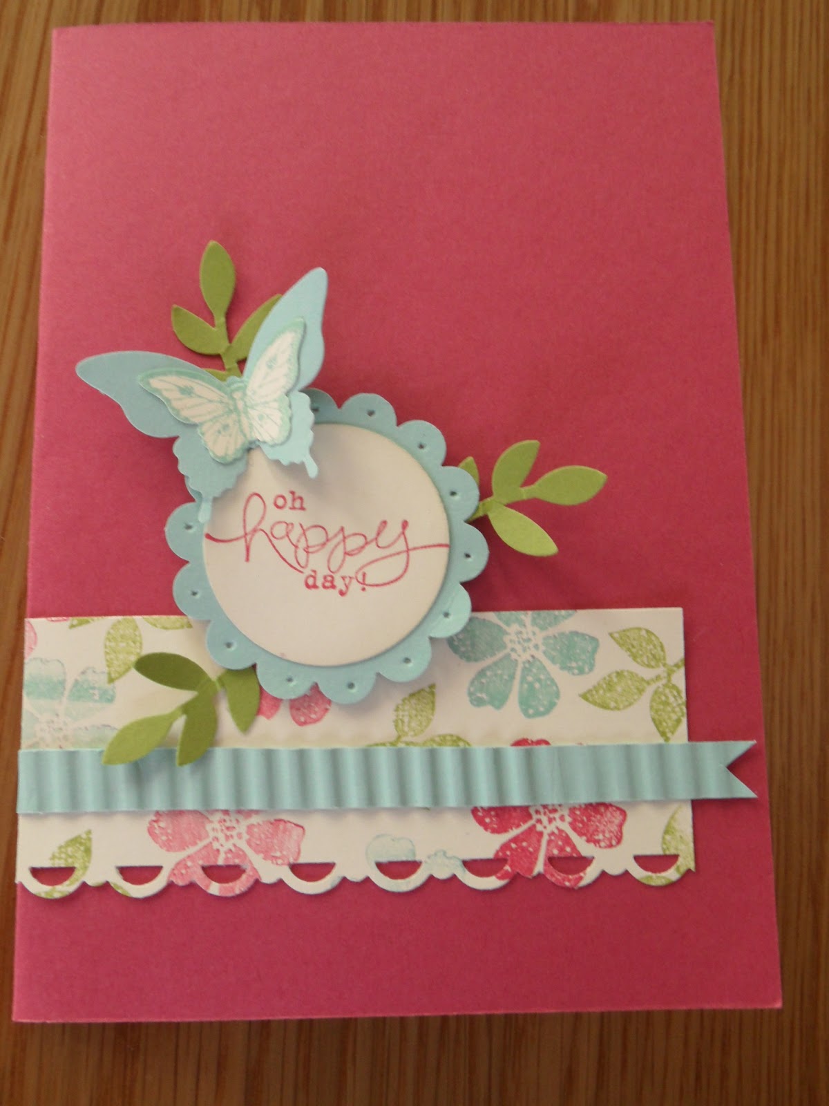 Sale-a-bration stamp sets, Bloomin Marvelous stamped in pool party, rose red