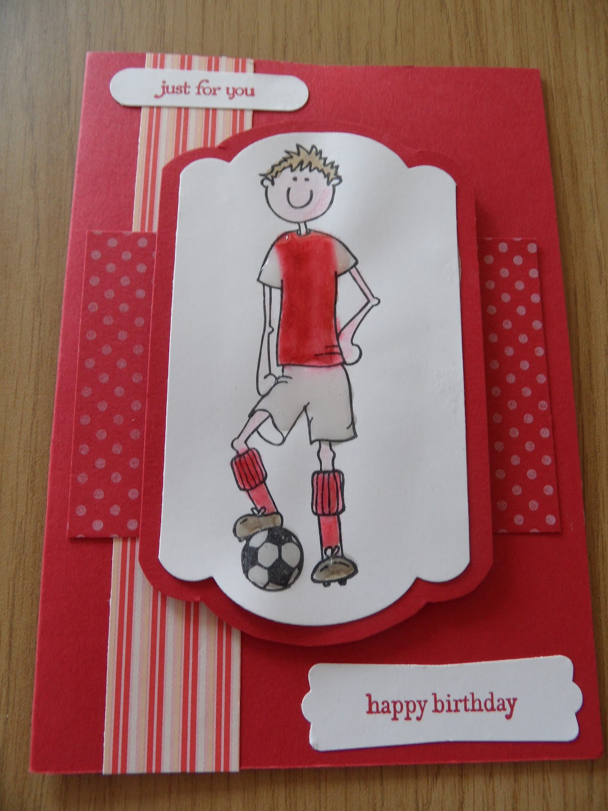 footballer and coloured it in using Stampin Up markers in Real Red and an aquabrush. I covered the