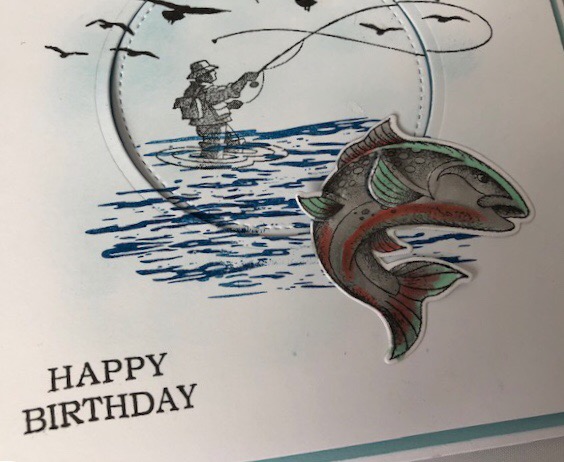 I have a fishing card for you today made with the Stampin‘ Up! Best Catch Stamp Set. This set is in the 2019 Occasions catalogue. It comes in a bundle