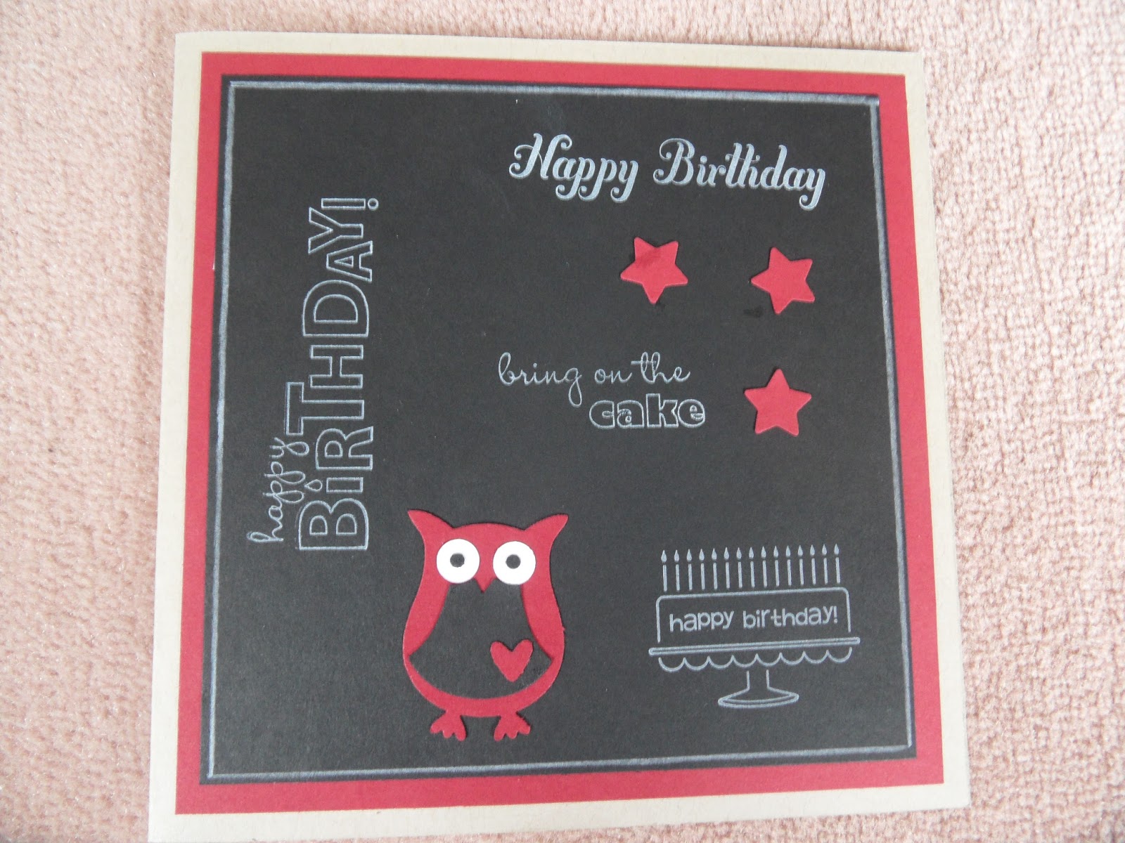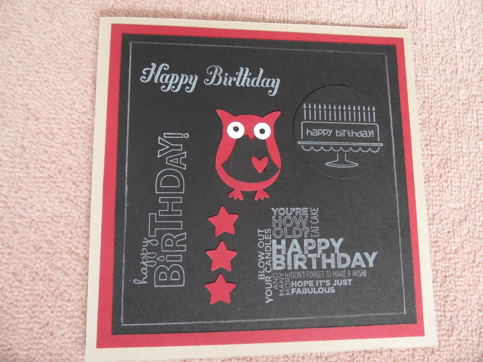 I then decided to alter the design to make a card which would be more suitable for a man and thought that the owl builder punch would be a great addition. What do you think?