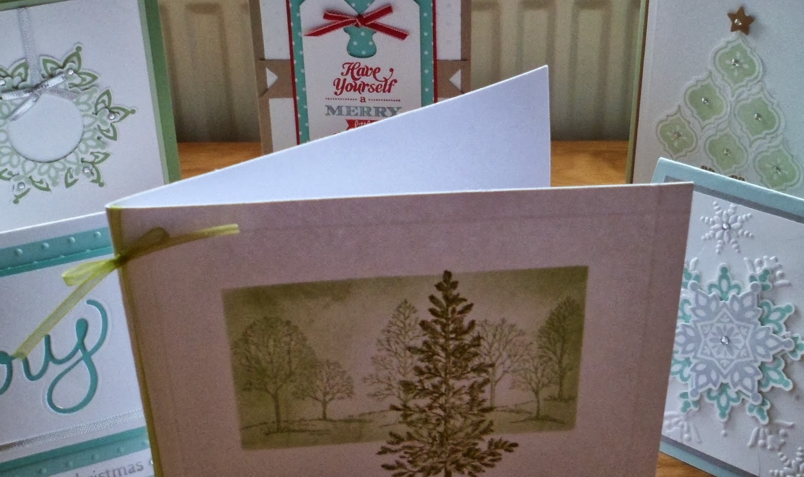 There are 12 cards in total, 6 designs, 2 of each. Four of the designs use products from the new Autumn/Winter mini catalogue