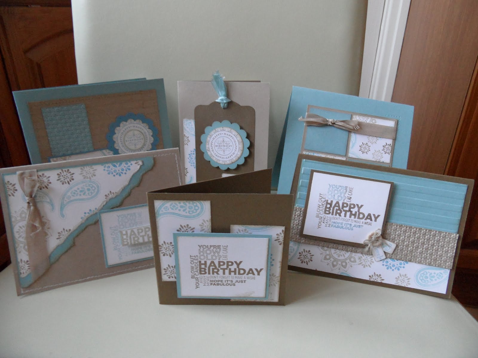 Mens cards using one sheet of patterned paper! Cost £20 – includes all materials to make 10 cards