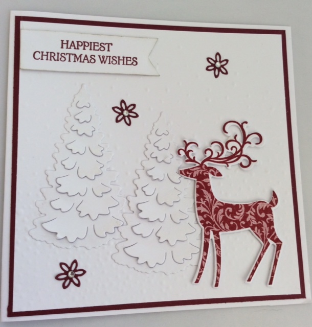 We have been focusing on Christmas cards in the classes over the last few weeks. I am sharing some of the cards we have been creating mainly using the Dashing Deer, In the woods and Beautiful Blizzard bundles from the new Autumn Winter catalogue. The cute cards at the end of the post have been CASED from The Craft Spa, using the Signs of Santa bundle. I love this set with the cheeky little elves