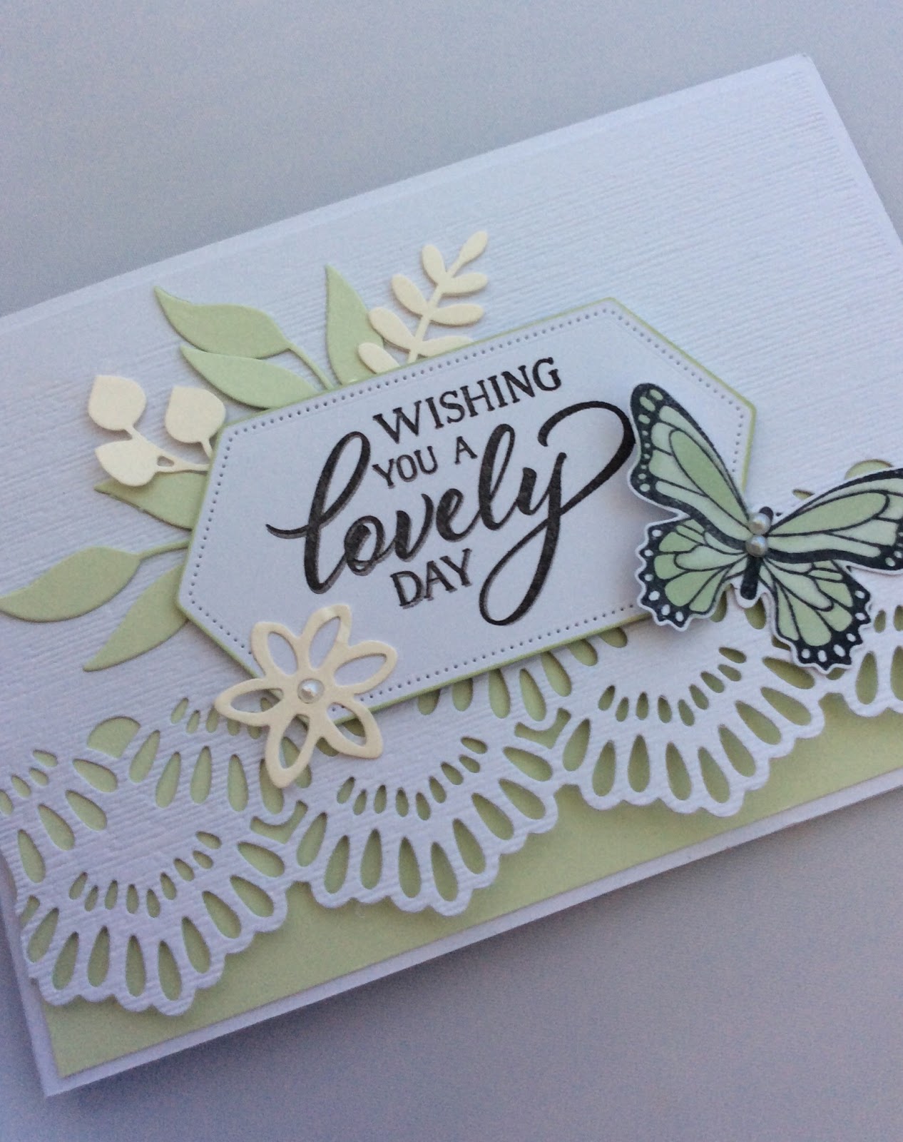 Hi everyone, I have used one of the new stitched nested label dies as the centre piece for the following card and co-ordinated it with the delicate lace edgelits dies and some die cut foliage from various sets as embellishments