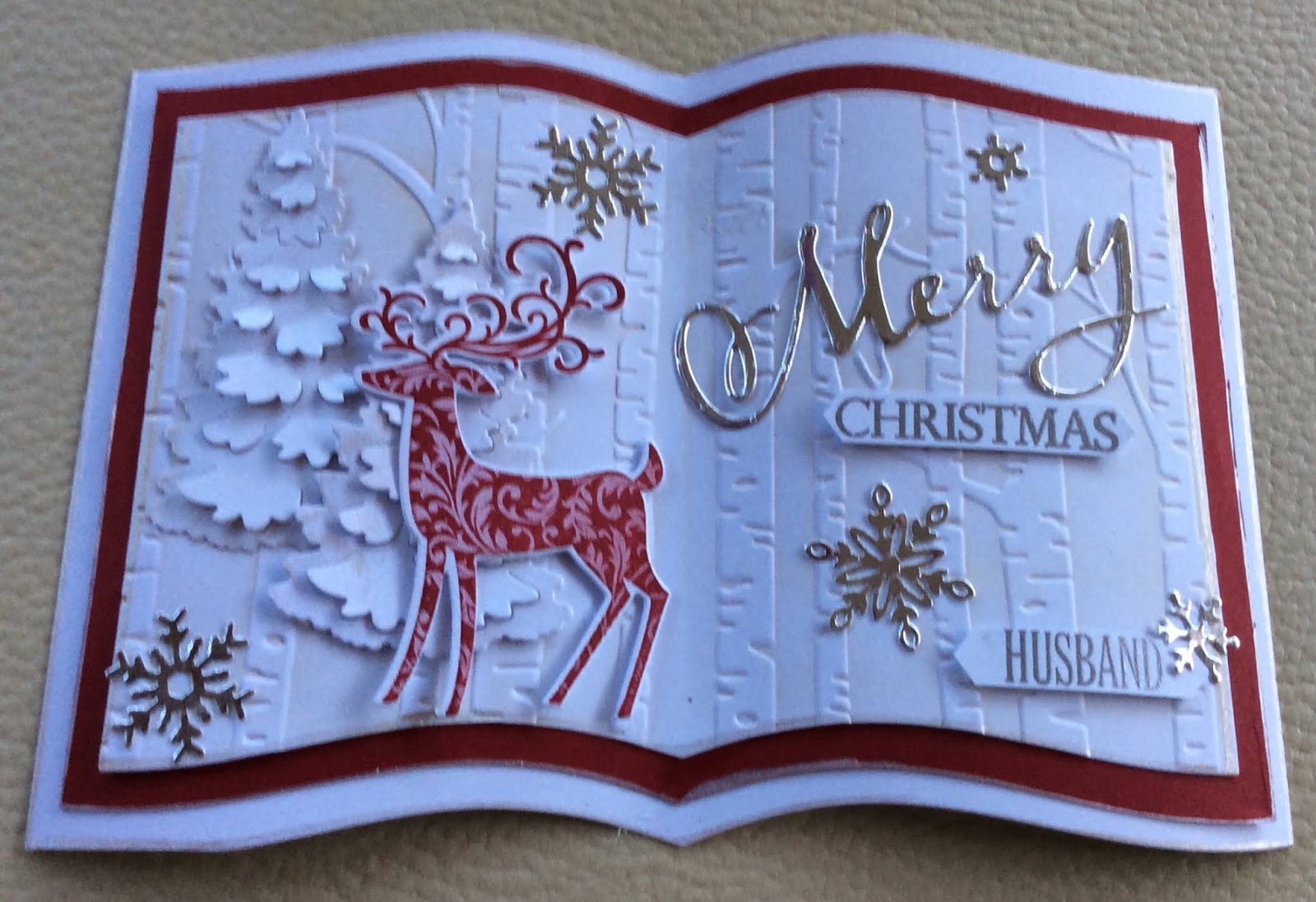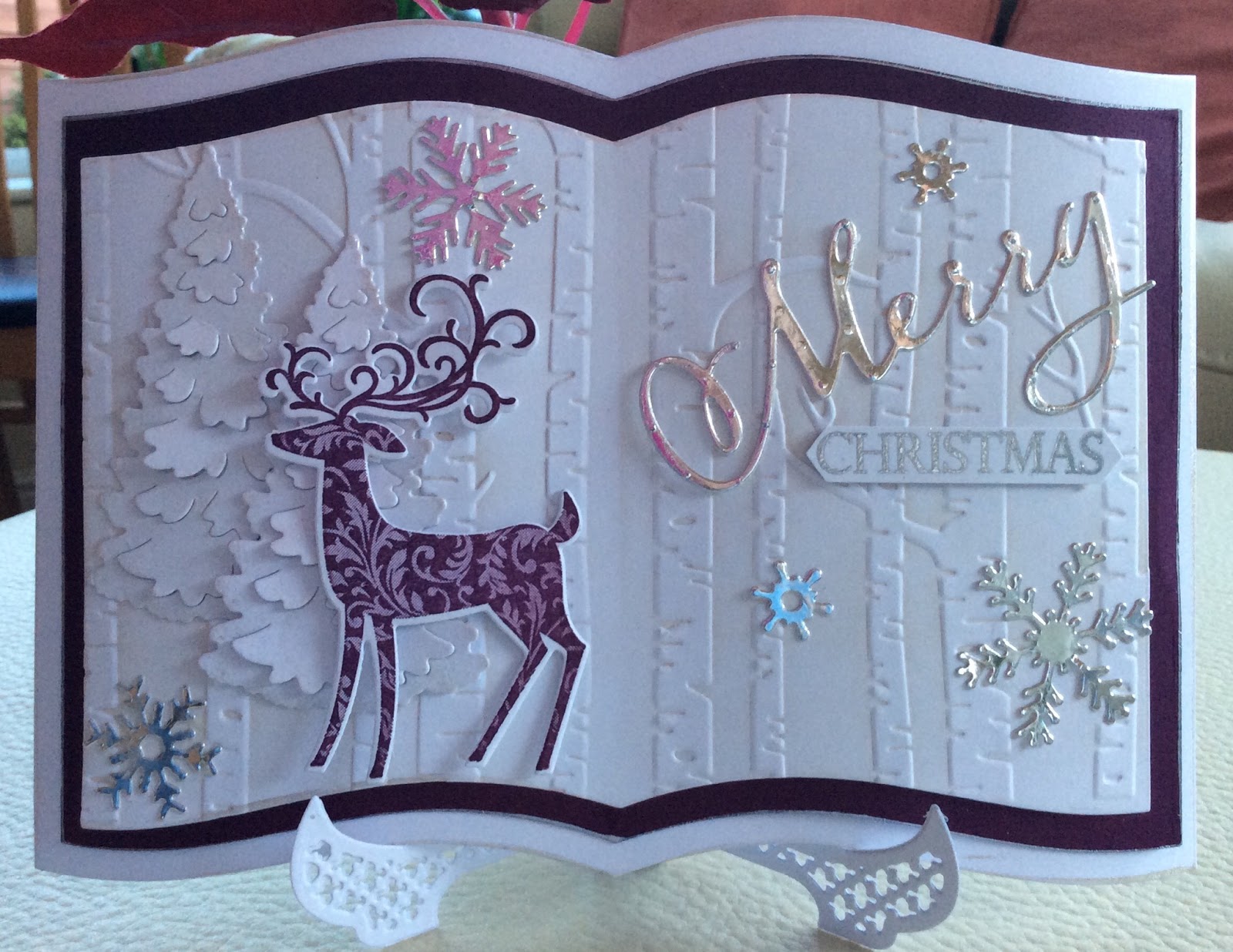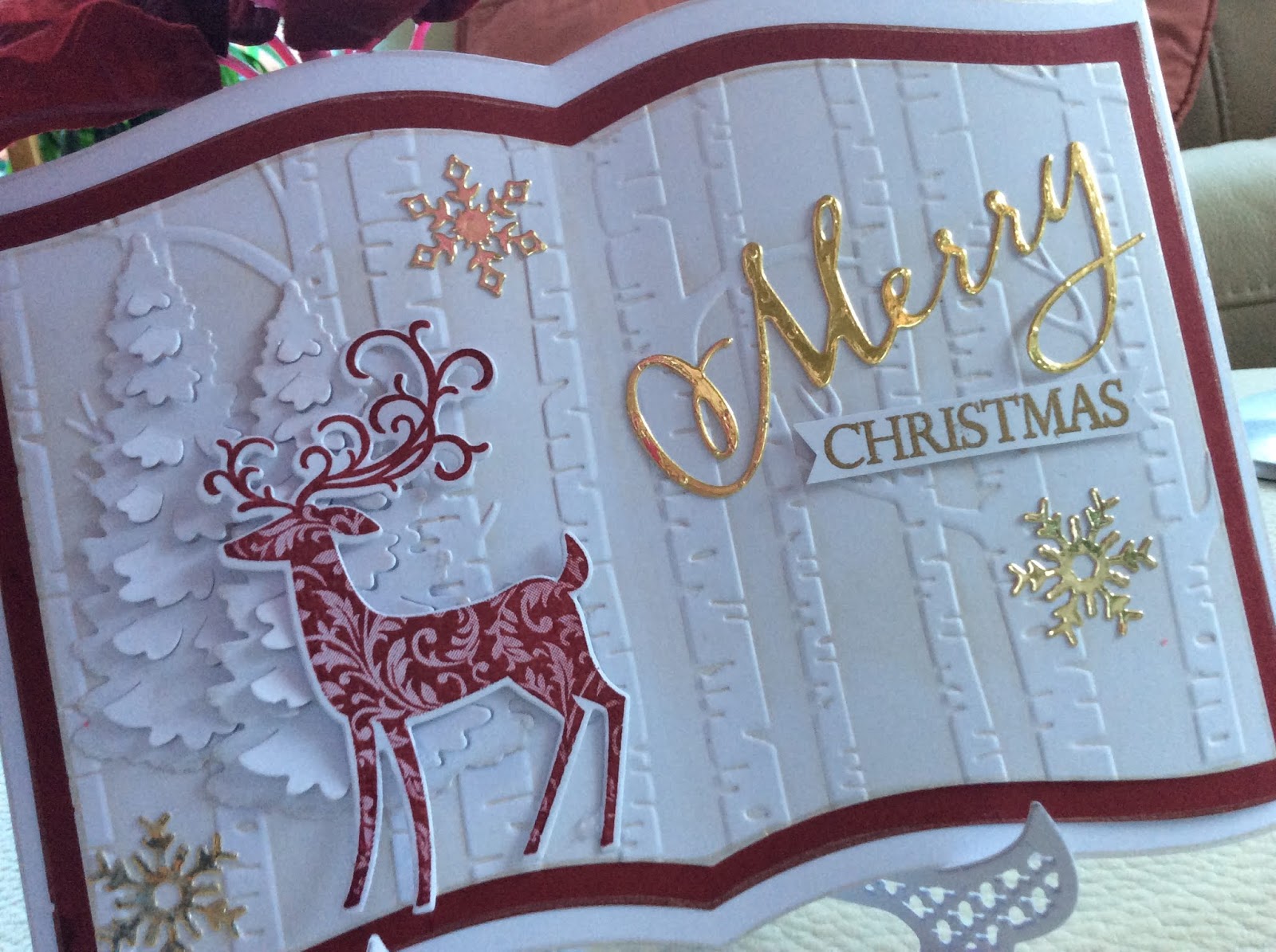 Today I am sharing the cards I sent to close friends and family. I used a Storybook die set from Crafter’s Companion to create the pages and stand.