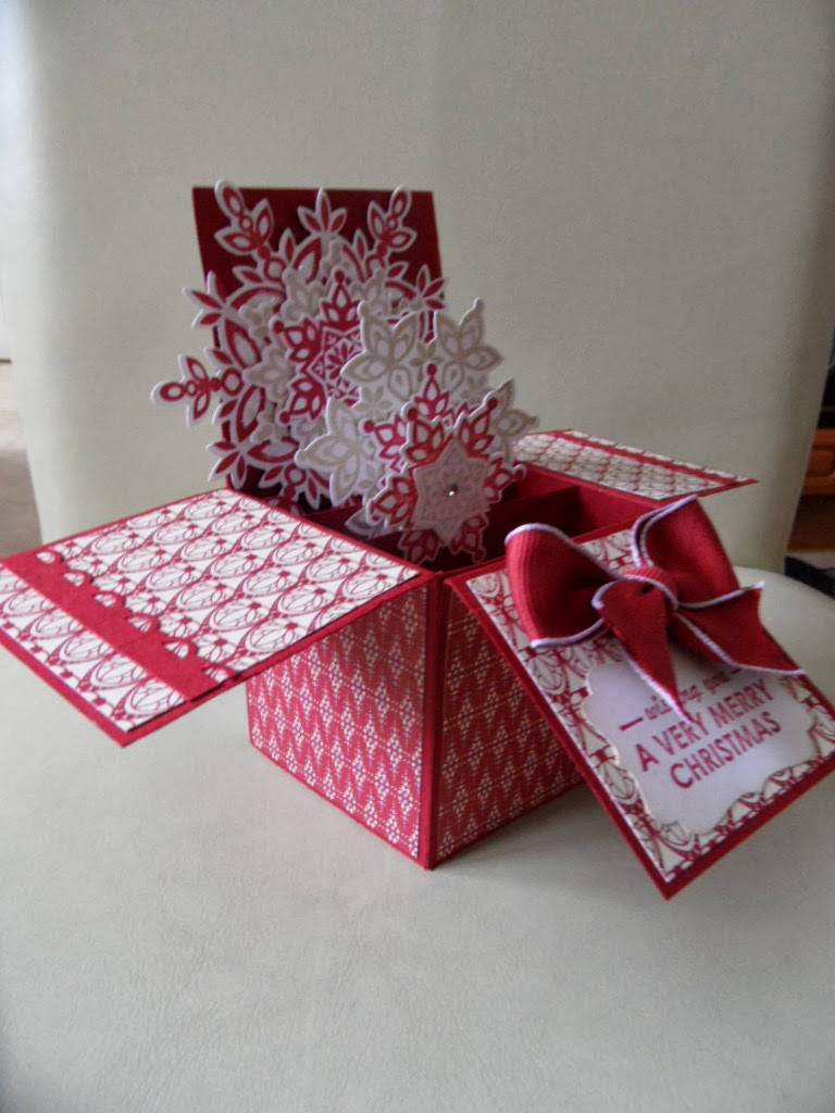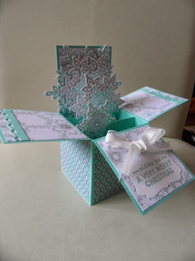 We made this beautiful card in a box which was the inspiration from a fellow Stampin’ Up demonstrator Monica. Here is a link to her website with a fabulous tutorial and easy to follow instructions