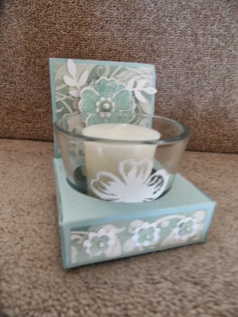 Last weekend I ran a workshop to make an embossed glass candle votive, holder and matching card.