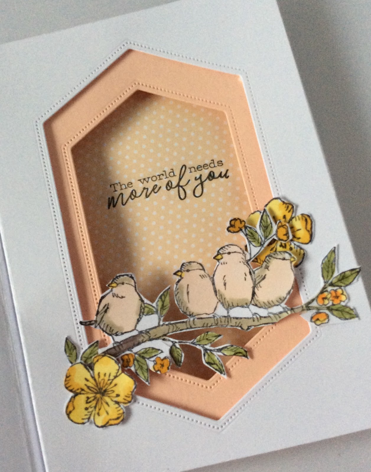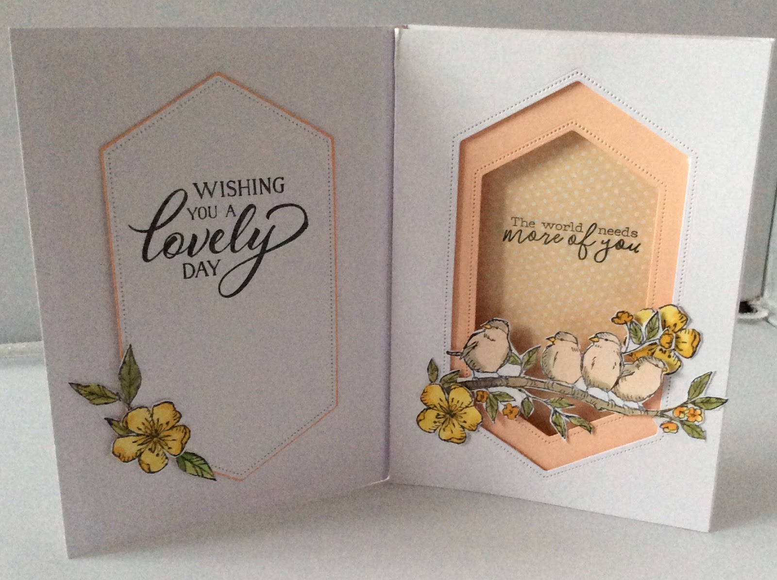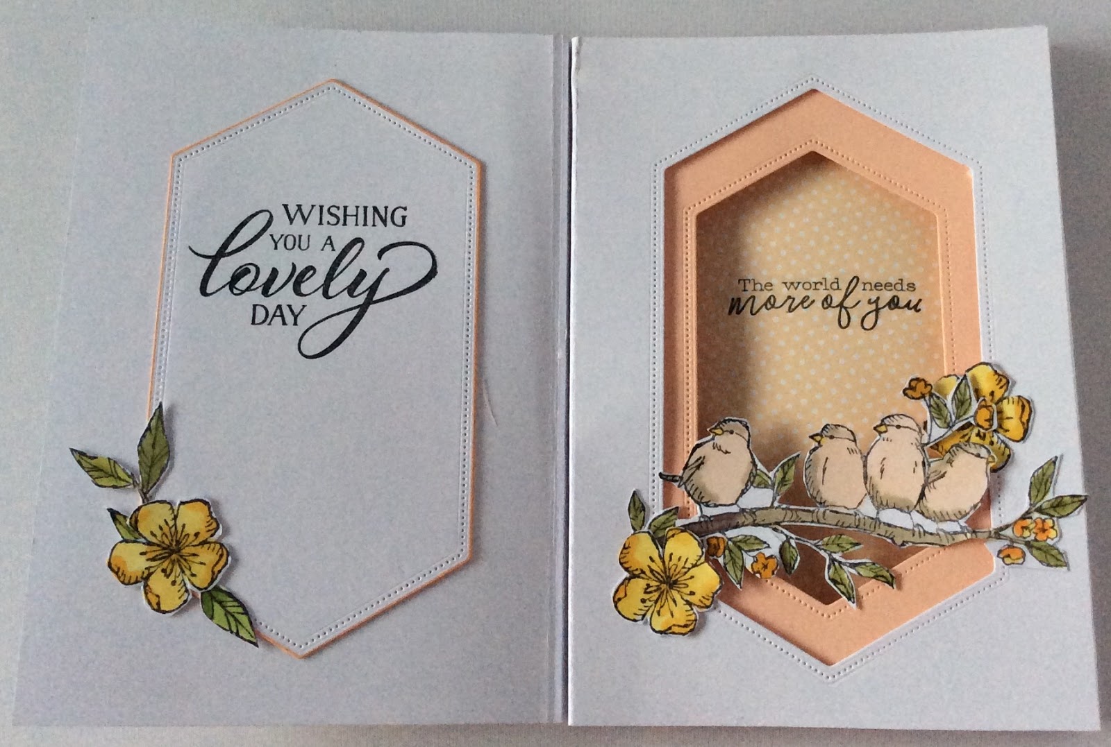 it reveals a fabulous aperture involving the birds on a branch using the stitched nested dies. I gained inspiration for this card from HERE