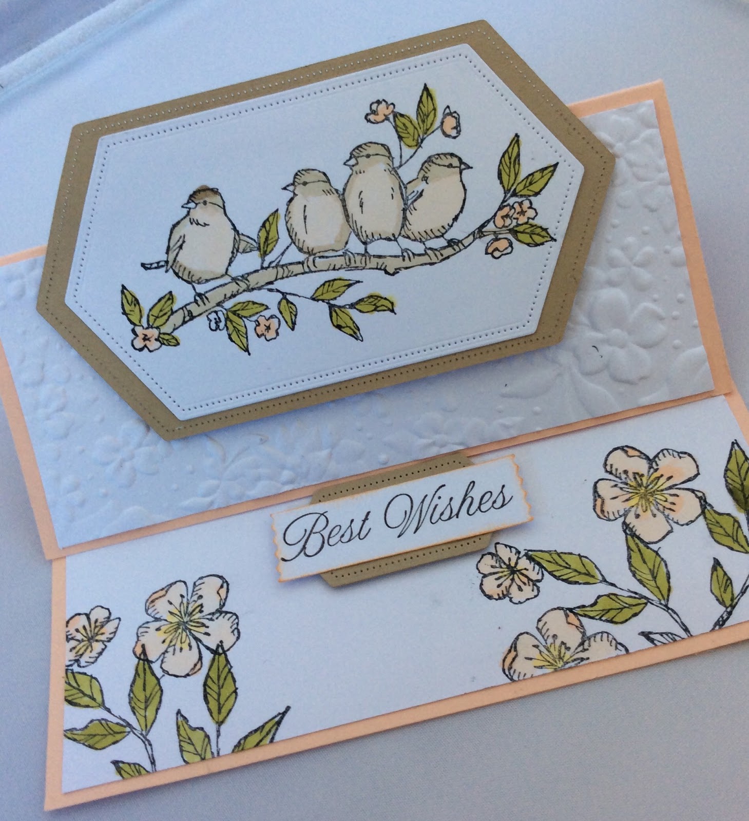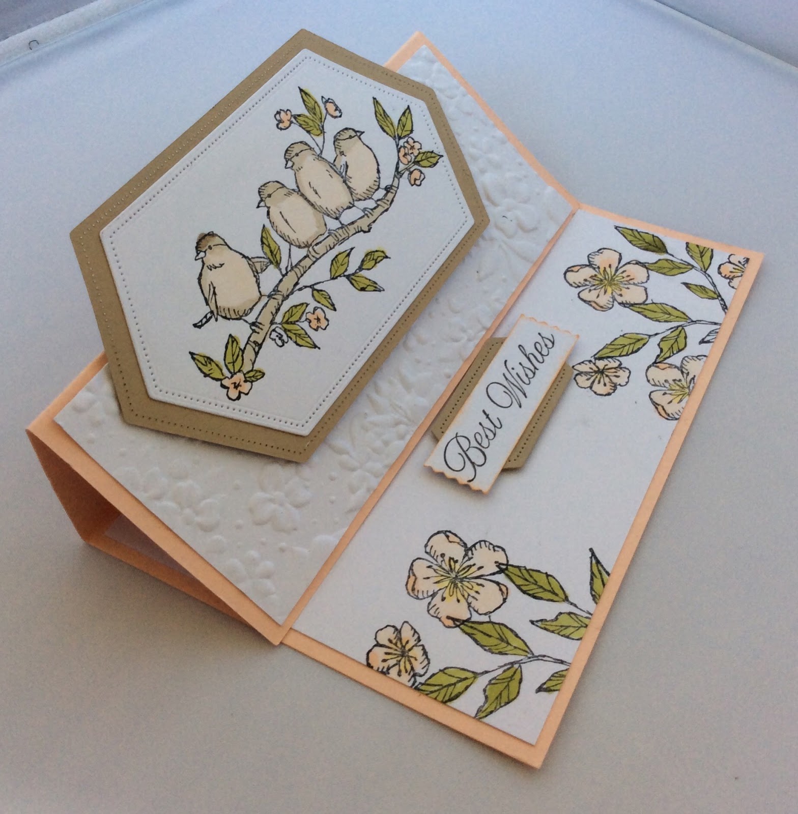 One of the panels was embossed with the Country Floral 3D Embossing Folder and the other panel was stamped with the flower and leaf images. All the images were coloured in using stampin’ blends
