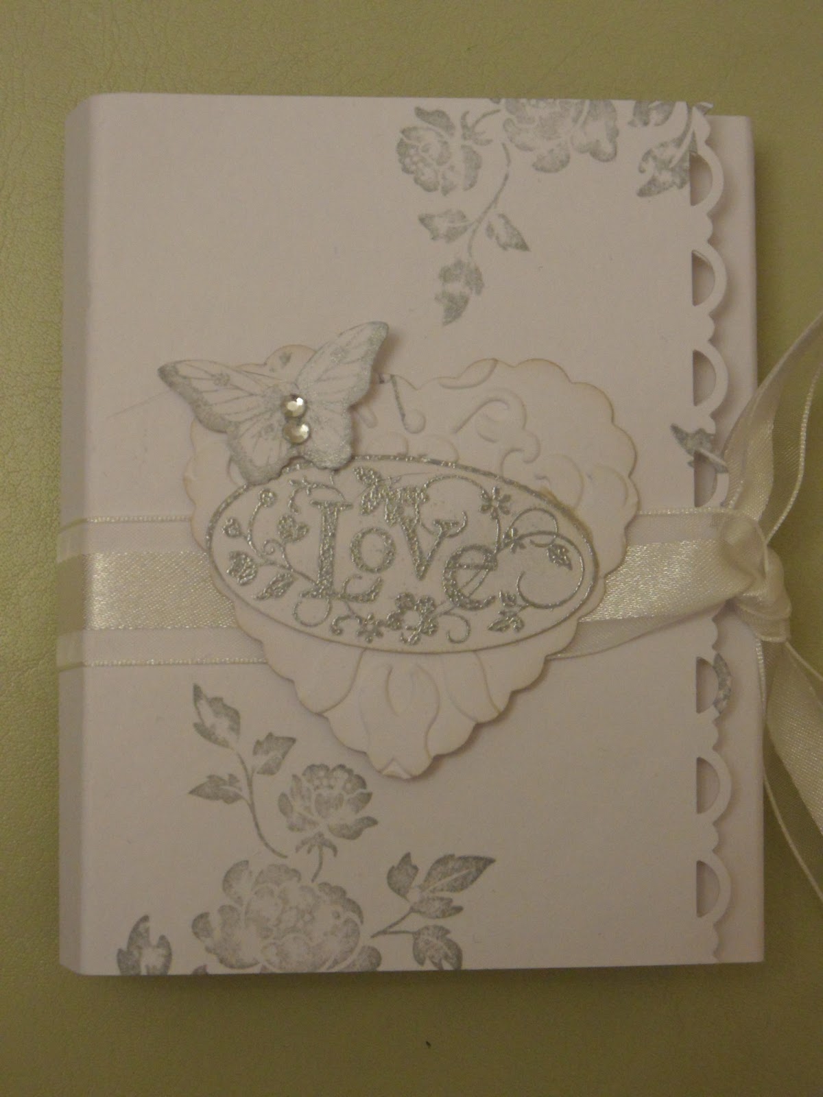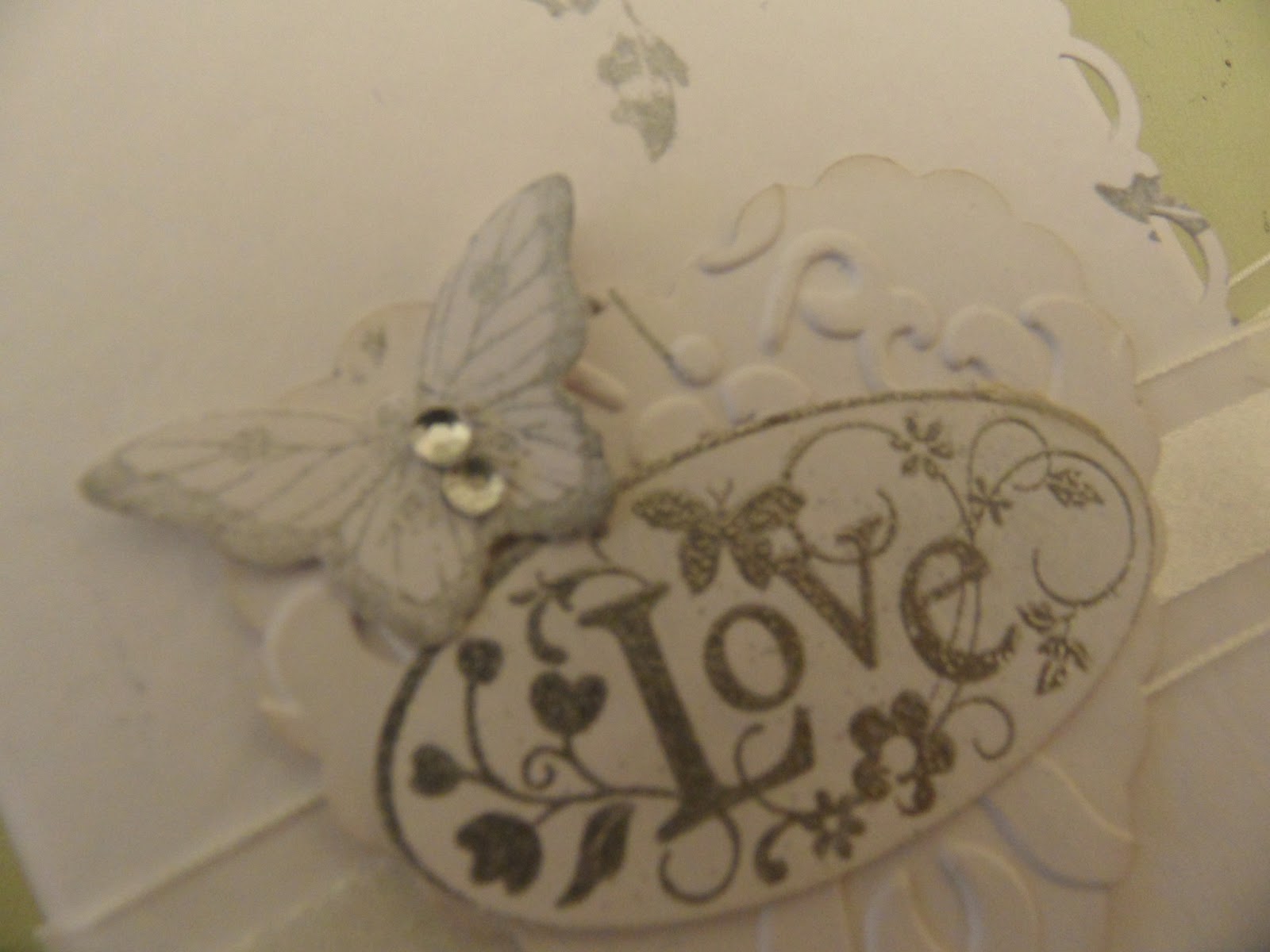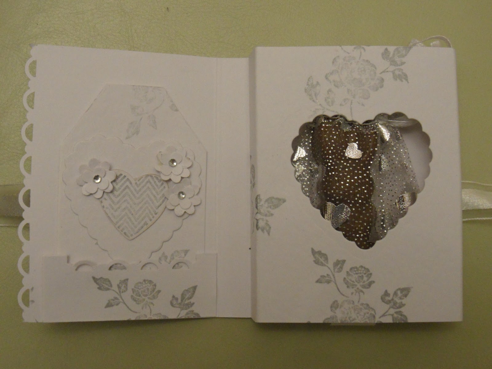 I first made it in pink, white and crumb cake and then thought it would make an excellent wedding, anniversary or engagement card so I made another one in white and silver