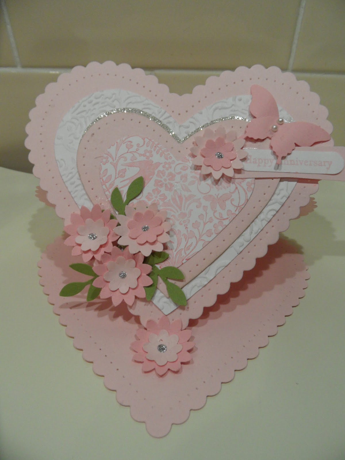 The occasions paper piercing pack is from the new mini catalogue which is out on 1st February and used to create the holes around the edges of the pink hearts. Boho blossoms and elegant butterfly punch were also used as embellishments. Can you spot a small piece of silver glimmer paper peeking behind the second pink heart?