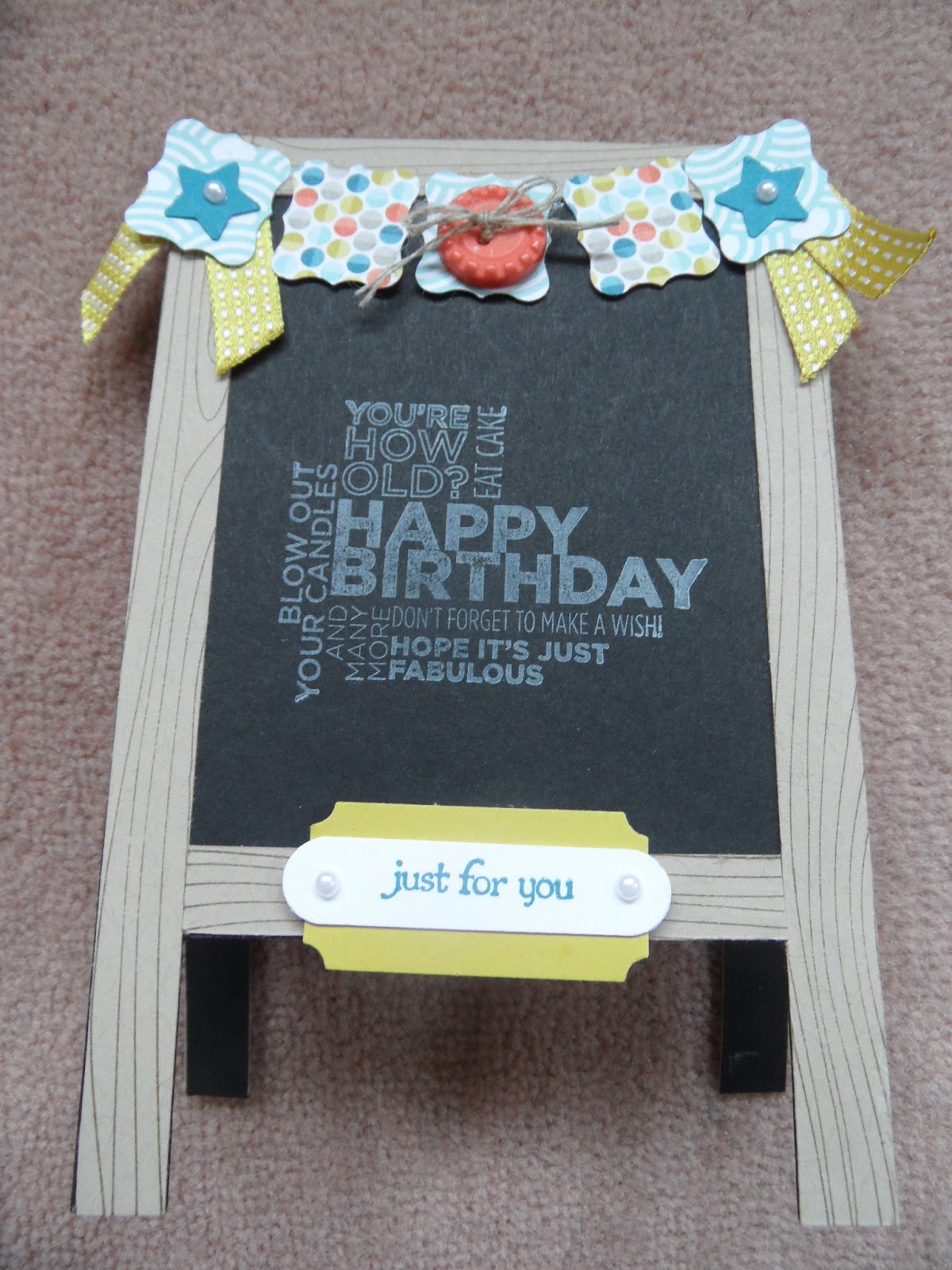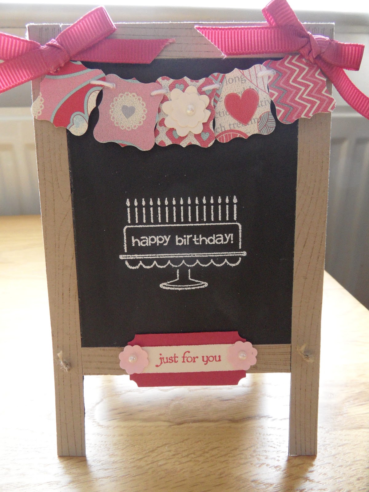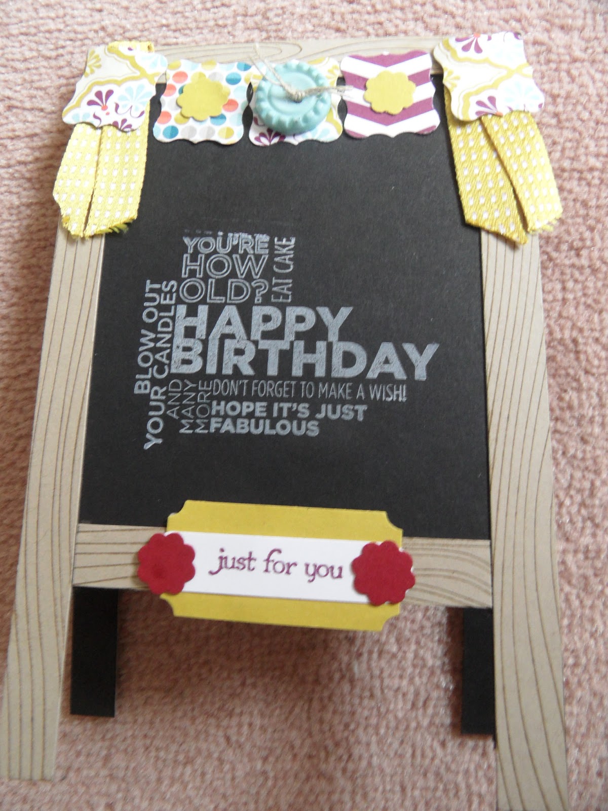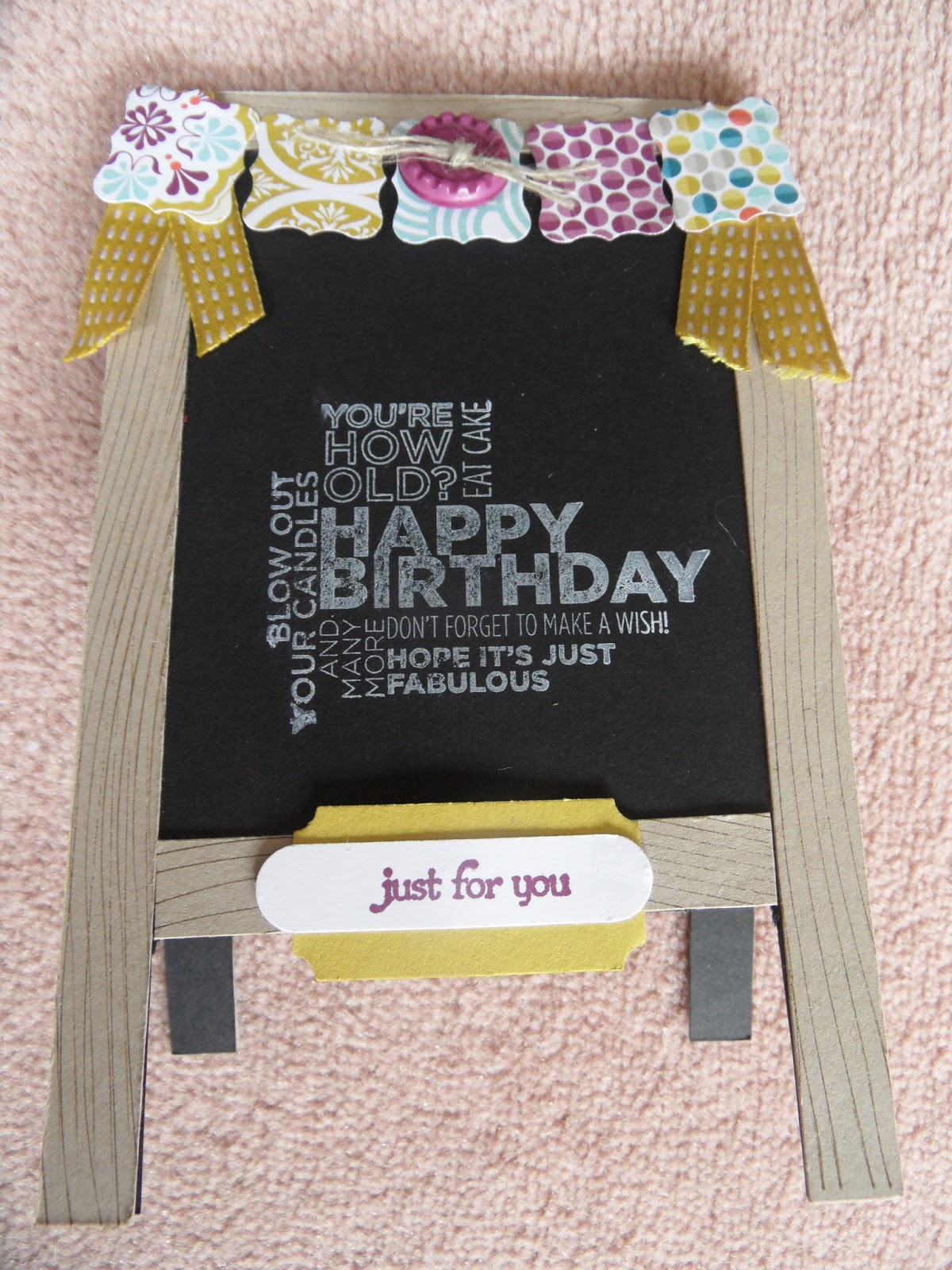 The chalkboard easel is a great design for a card in which I gained the inspiration from one on Pintrest.