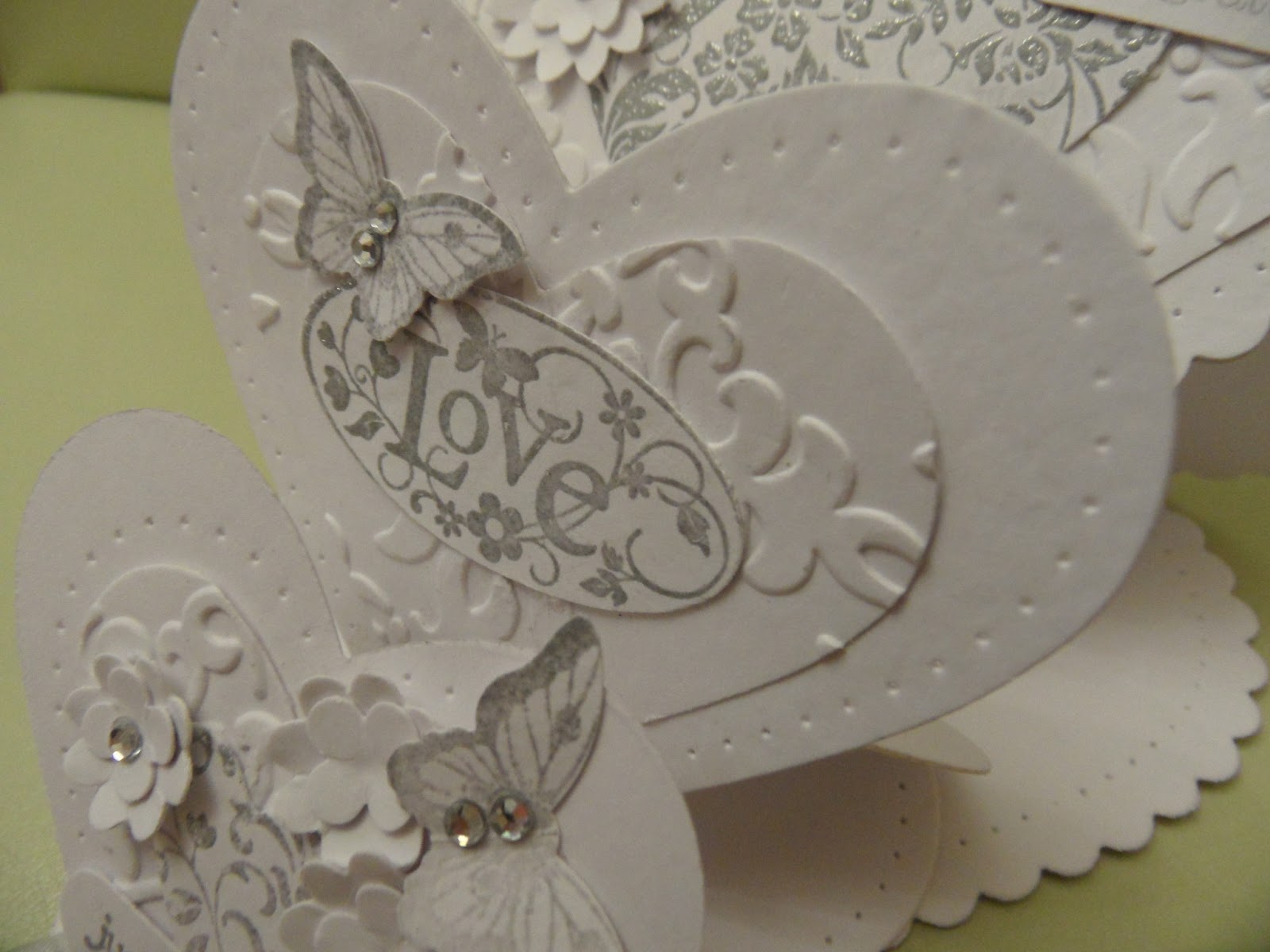 I have made two cards, one in pink and one in white and you can choose which colour you would like to make. They would make an excellent Wedding, Anniversary or Engagement card