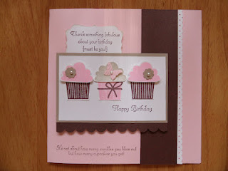 I had my first card class today since Easter which was great as it distracted us from the rainy weather outside. We made two cards using the Create a cupcake stamp set and cupcake builder punch from stampin up. These are in the spring mini catalogue,which runs out on 30th April so please do not miss out if you would like to buy the set.