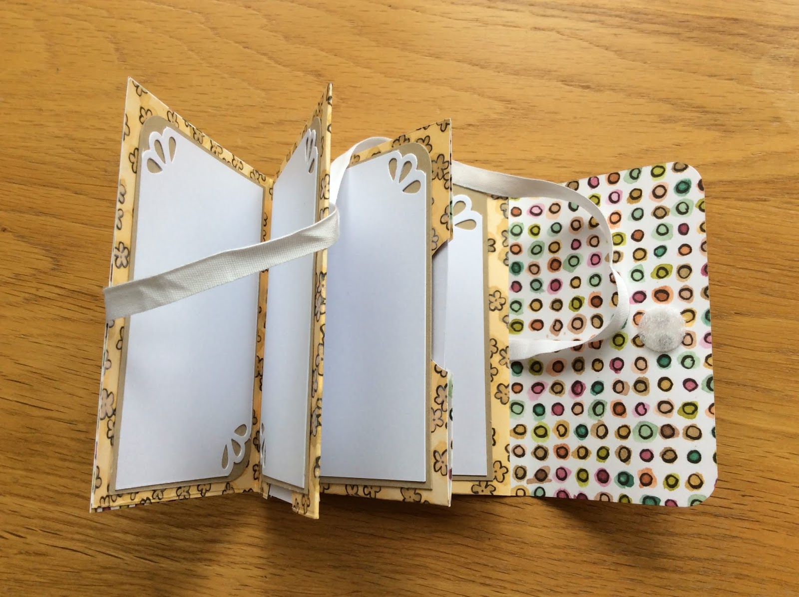 This is a project we made in our craft classes a few weeks ago. It is something a little different to making a card – a mini album created from just one sheet of 12 x 12 DSP and some additional co-ordinating cardstock. The cardstock we used is the Share What we Love DSP  which has now unfortunately retired. I CASED this fabulous design and tutorial from Amanda at Scrimpingmommy.com  HERE