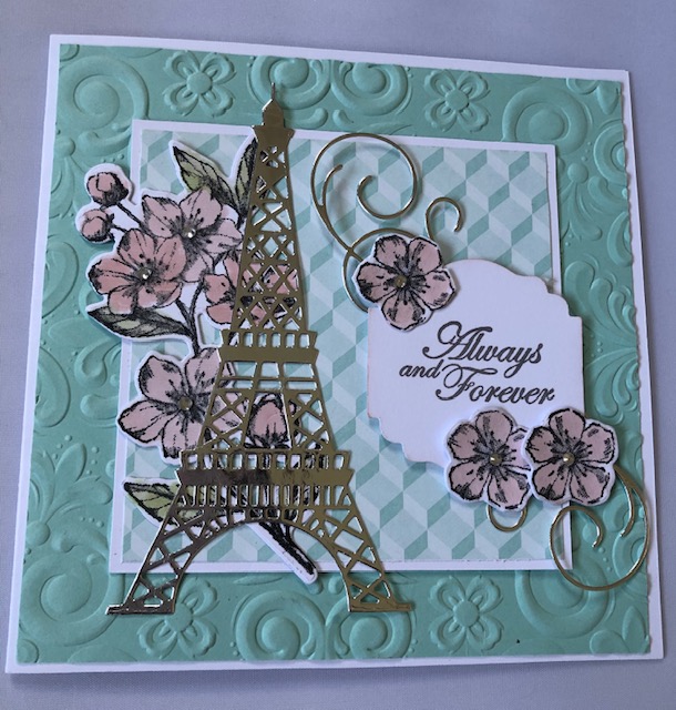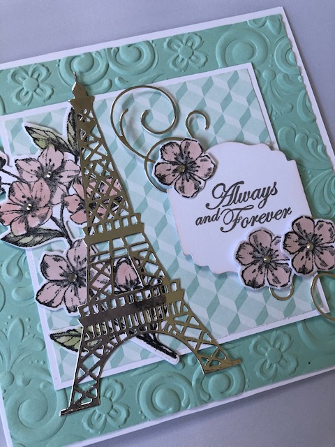 I have used the Parisian Dies and the Forever blossoms bundle for the above anniversary card. These dies and matching stamps (parisian beauty) are on the last chance list so if you would like them, please buy them before they are gone for good. You can buy them separately or as a bundle