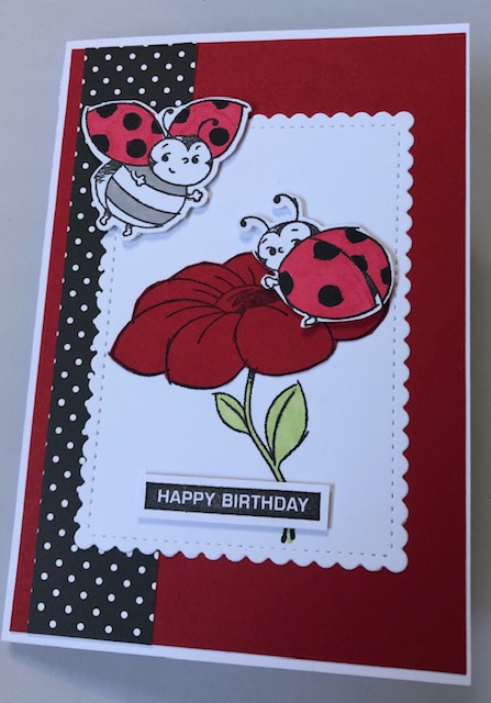 The adorable Ladybugs stamp set was still out on my desk so I inked it up for my second card