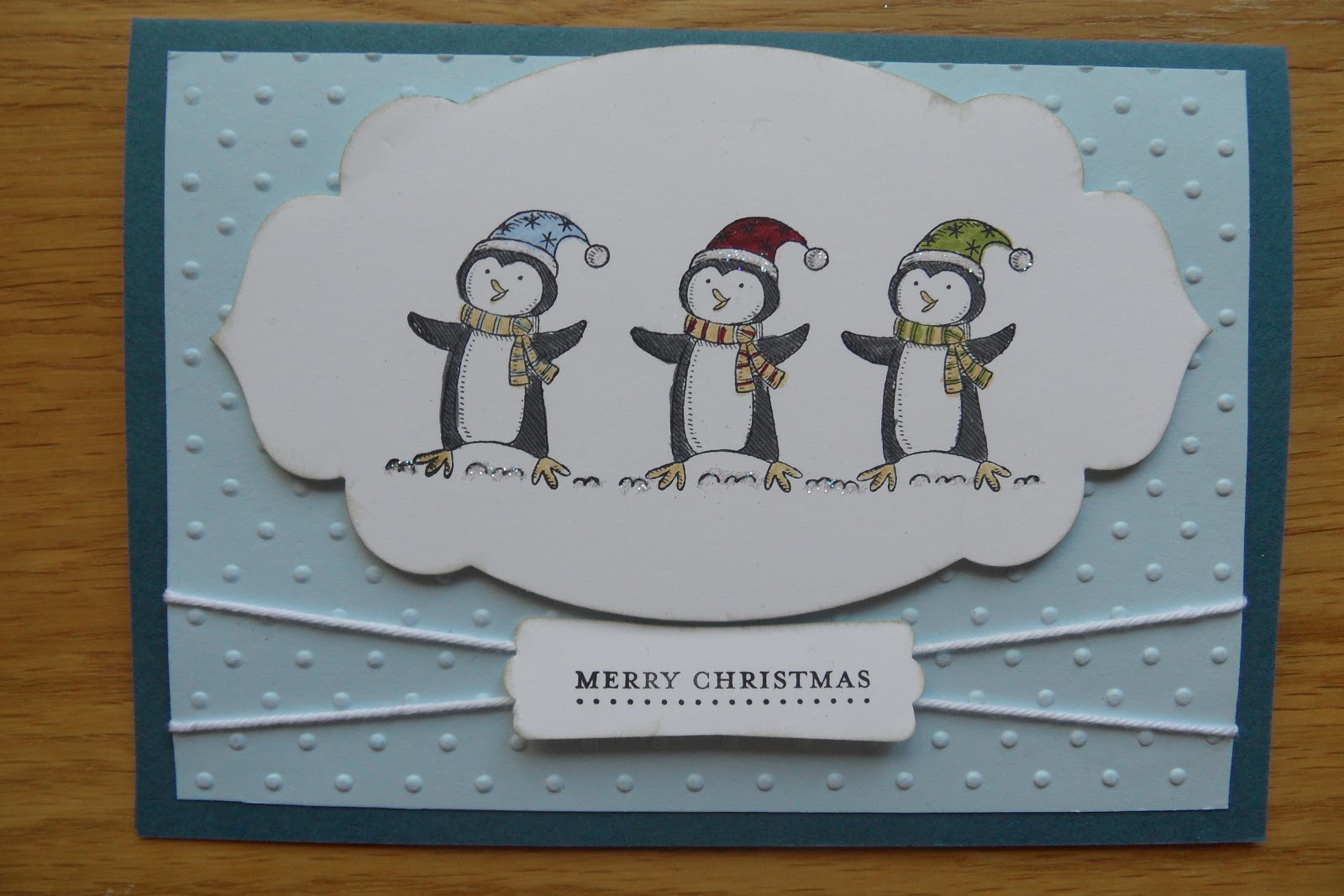 The following card is one that Glenis and Becky made as a variation of the above. I think it is cute with the three penguins in a row.