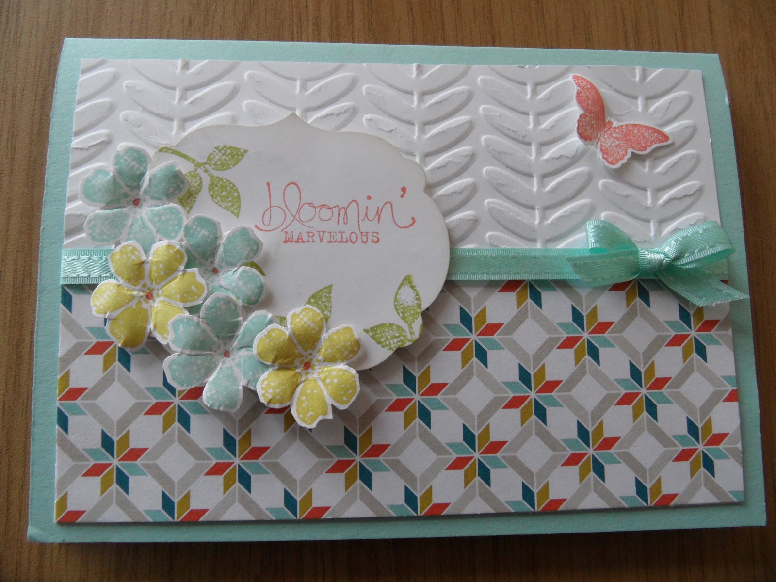 4. Embellishments – Sycamore Street ribbon, Bitty Butterfly Punch, Vine Leaves Embossing Folder