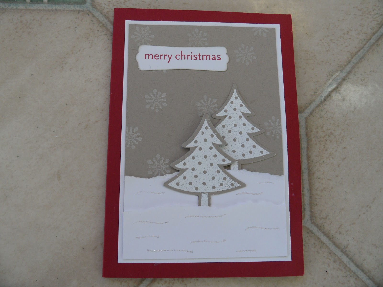 Colours used cherry cobbler and crumb cake. The front of the card uses the scentsational season stamp set and holiday collection framelits for the christmas trees which were heat embossed with white embossing powder.
