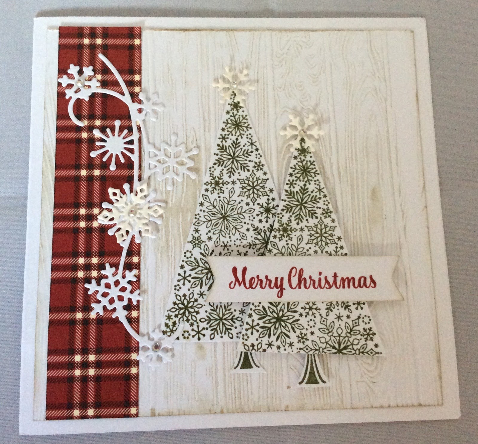 Today I am showing you the last of our christmas cards we made in the class. It was created using the Snowfall Thinlits & Snow is Glistening Stamp Set. These sets were only available to purchase for a limited time in November