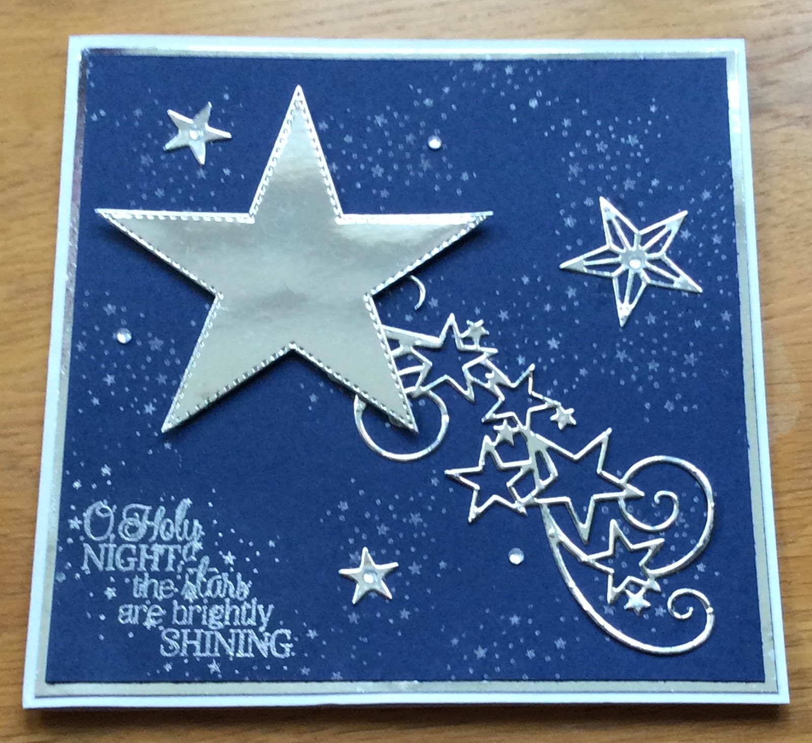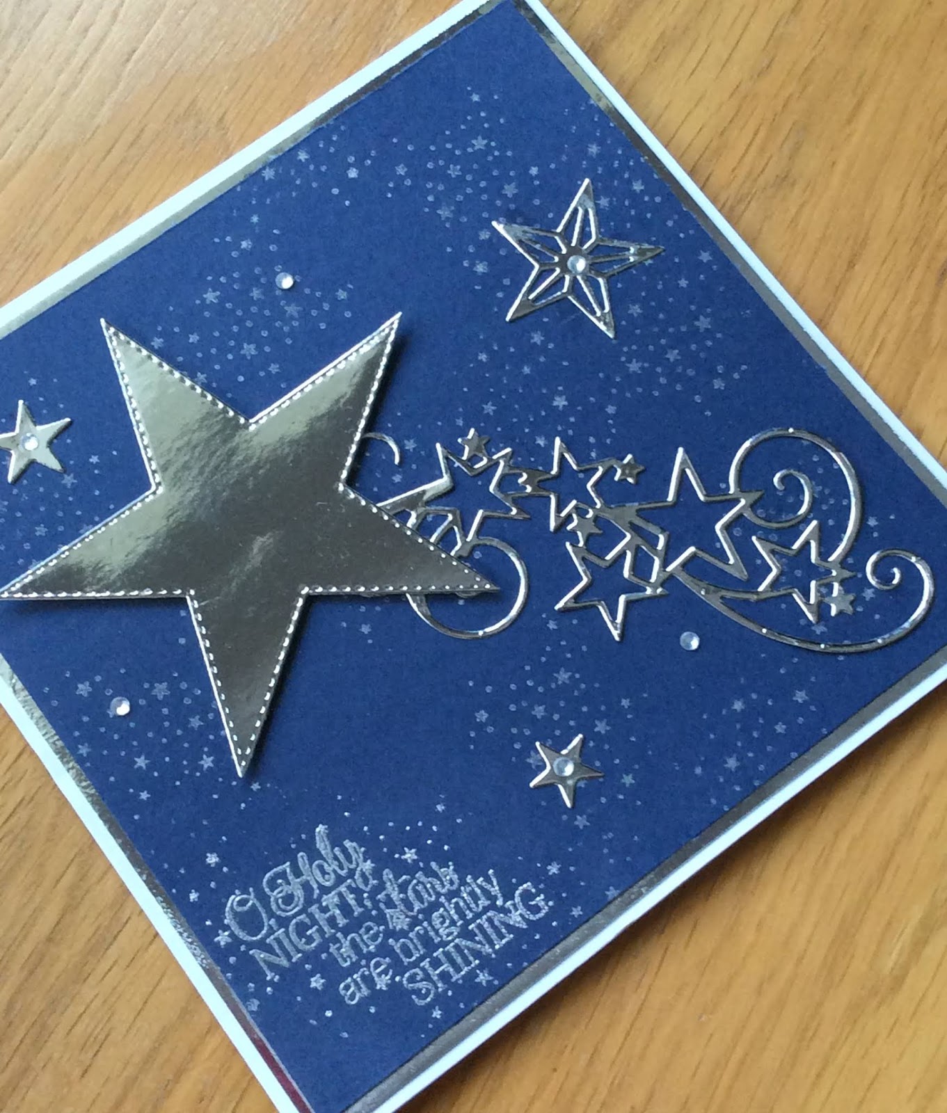 Several of the stars from the set were die cut from Silver Foil sheets and glued to the front of the card and a few rhinestones to complete the creation.
