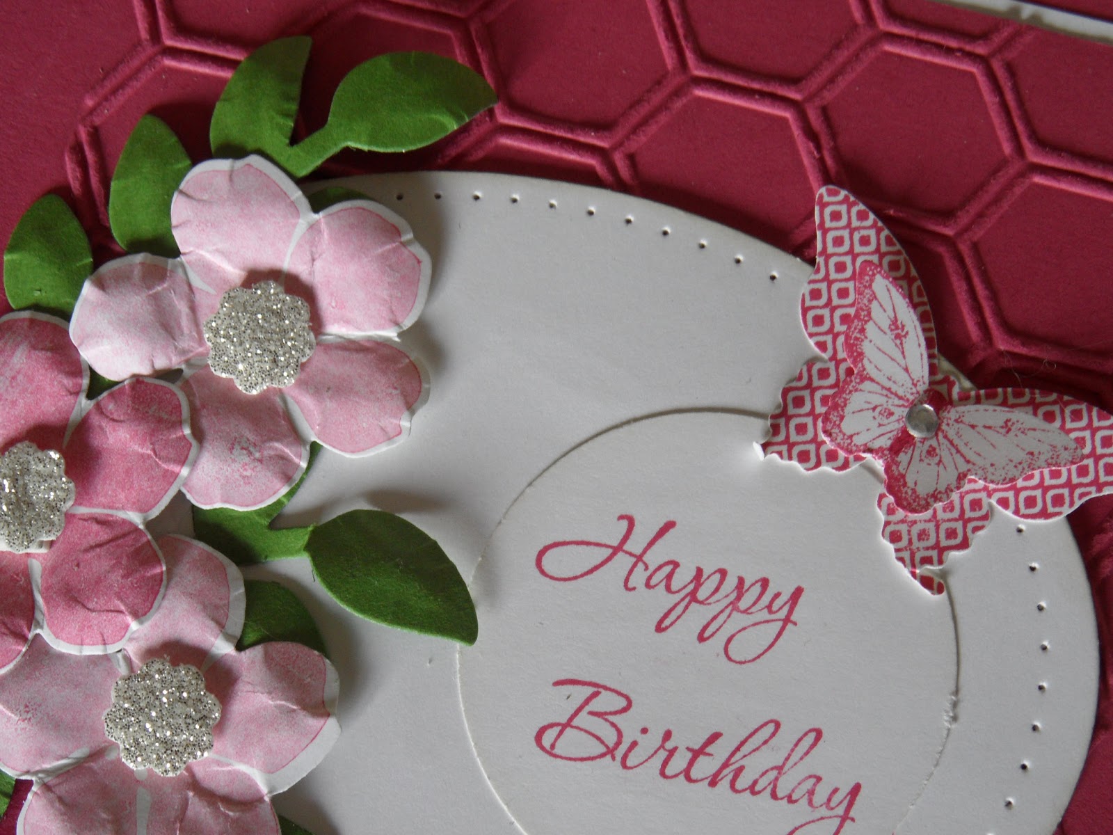 Here is a card we will be making in one of my card classes later in the month. It features the honecomb textured embossing folder, secret garden stamp set and matching framelits and the new bitty butterfly punch