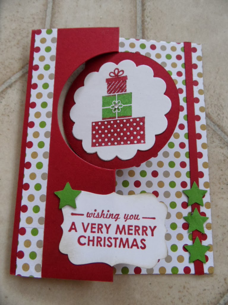 Cherry cobbler card and ink, wishing you stamp set, scallop circle, thinlits circle card, season of style designer series paper