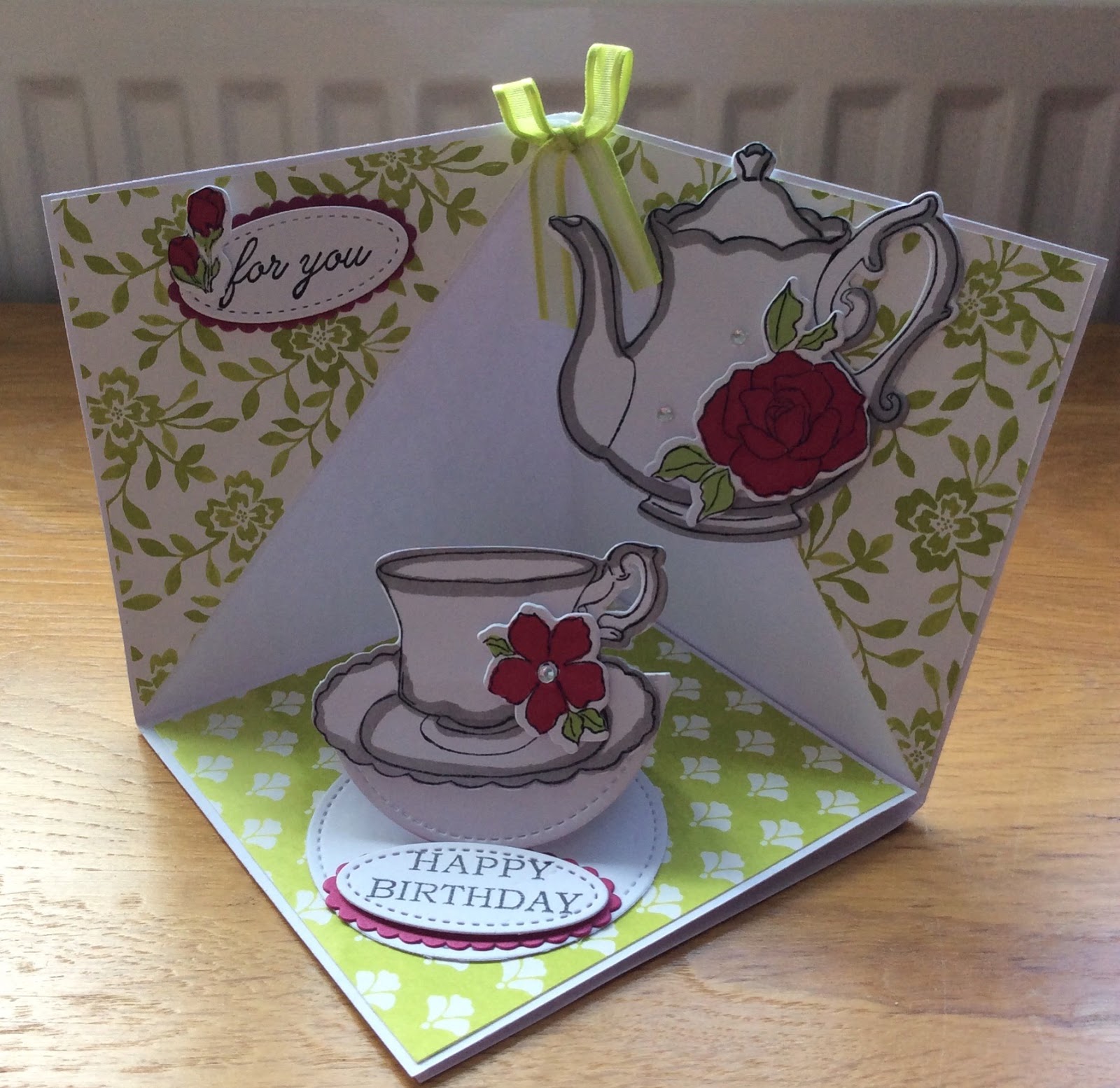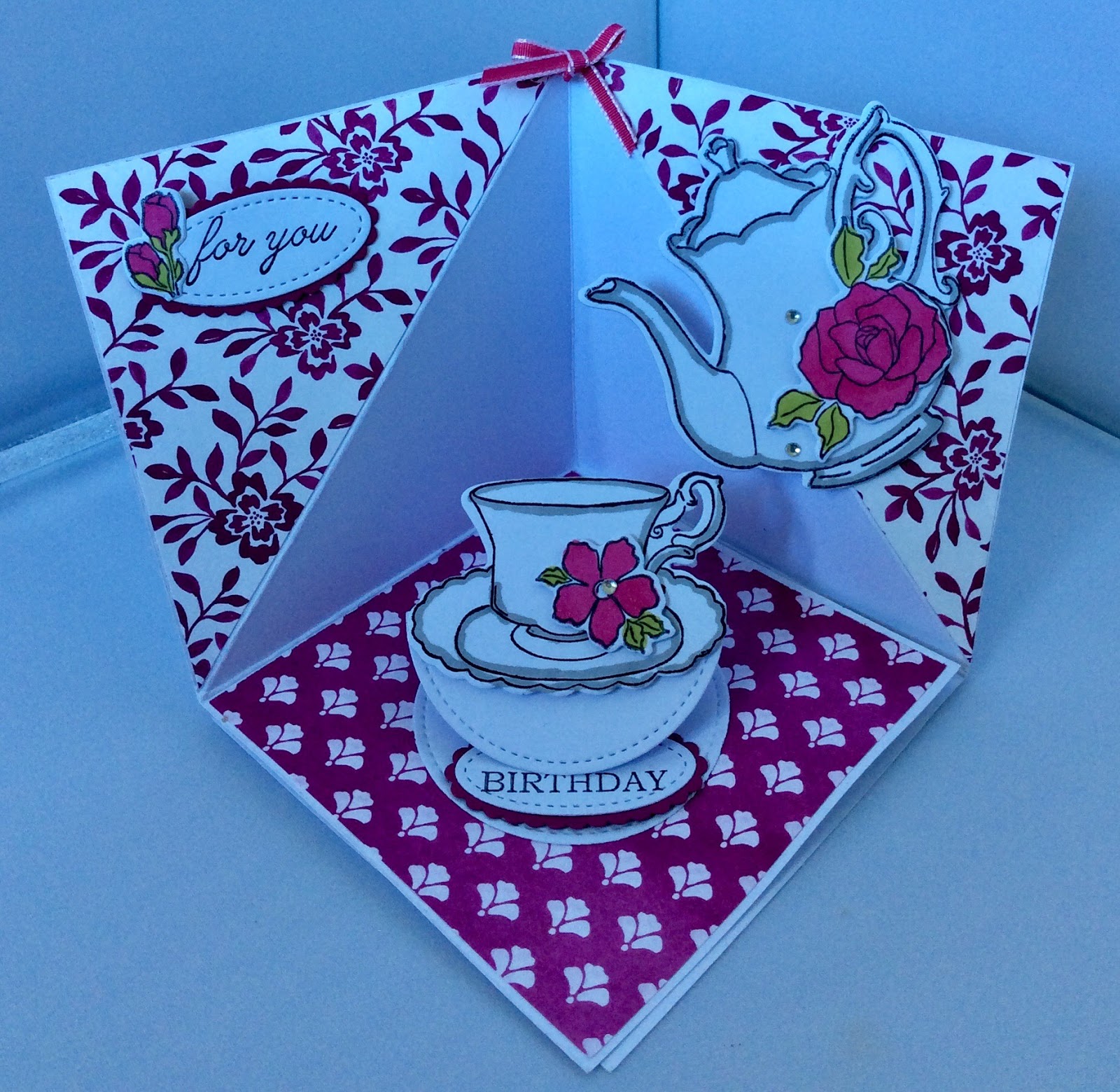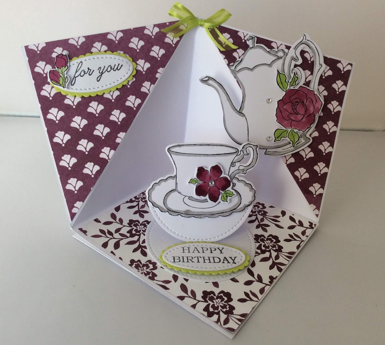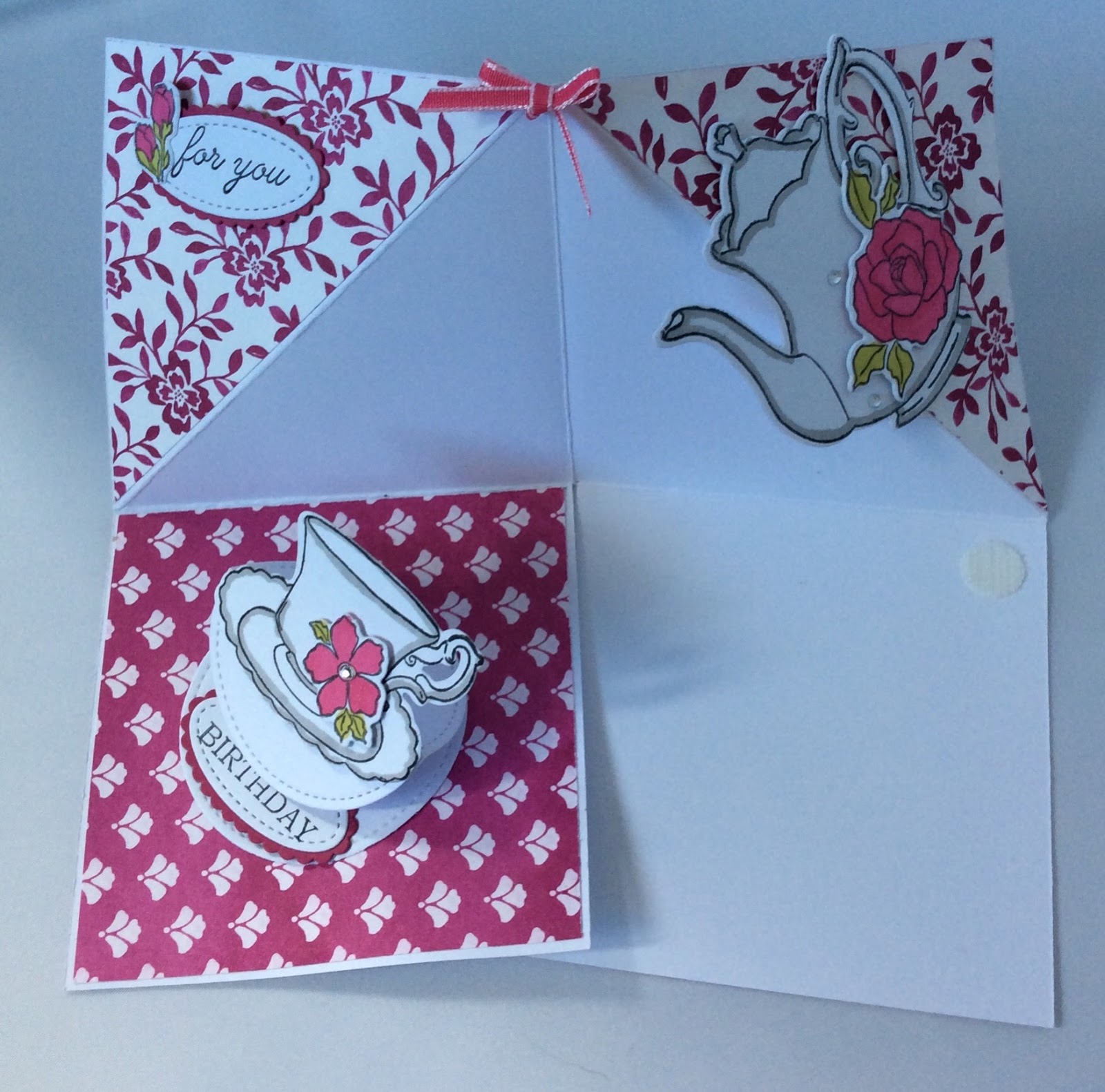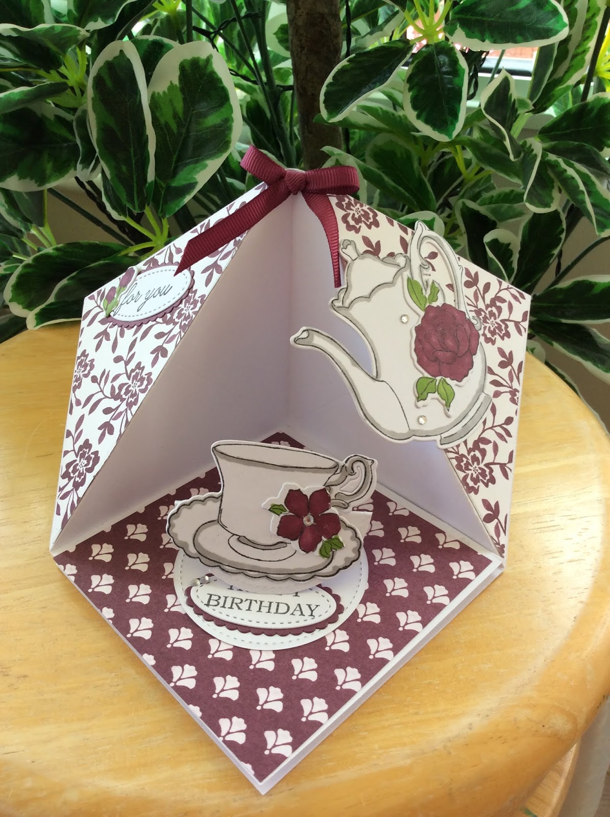 We had a go at creating some triangle corner fun fold cards using the teatime stamps and framelits in our classes recently. I gained the inspiration from HERE