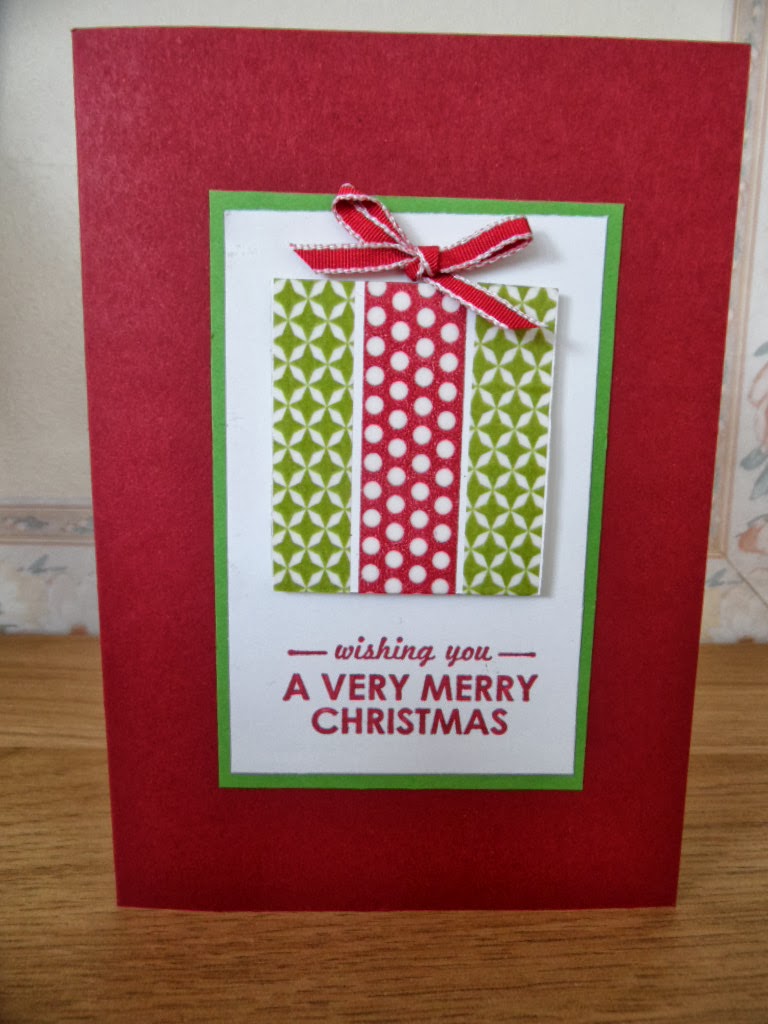 The next card is a really quick one, ideal for making in batches. A square piece of card covered in washi tape and a bow stuck on top to make a parcel!! How easy and effective is that..