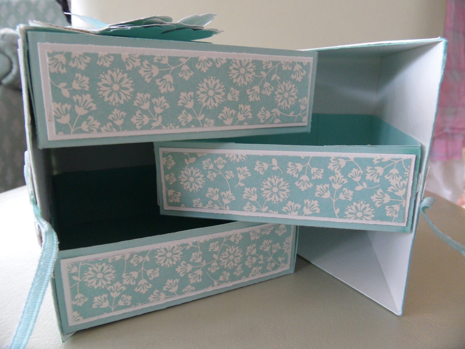 I would like to share this project  I made in our Tuesday afternoon craft get together. It was Anita’s turn to demonstrate and we all made a three stepper box. This is mine