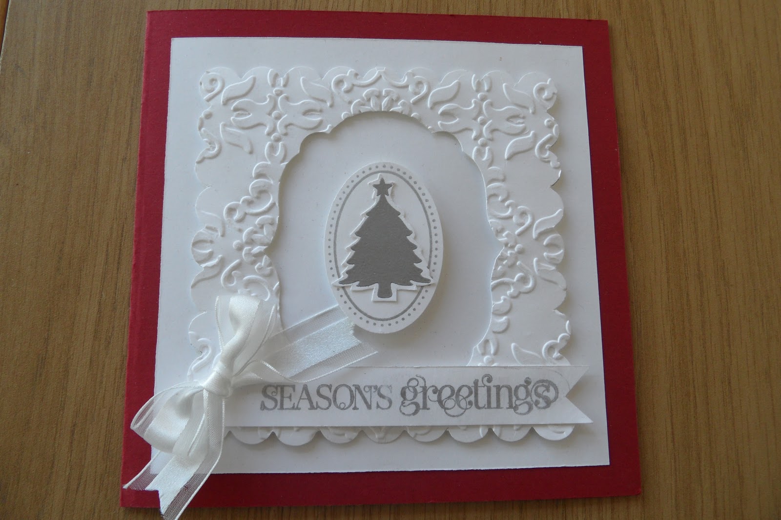 The card uses joyous celebrations stamp set and the colour combo is cherry cobbler and whisper white with a dash of silver for the Christmas tree and sentiment.