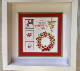 Last Saturday was my latest class at ‘Running with Scissors’. The project (apart from the challenge of eating the huge chocolate cookie – thanks Trish) was to make a Christmas box decoration/gift. Well, quoting one of my ladies ‘We had great fun’ and it really started to get us in the Christmas spirit to prepare for seeing all the Christmas Trees and decorations already on sale in the Town Centre shops.